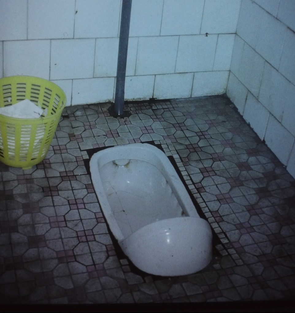 Efter en natt på hotell i Peking flög vi till Chengdu där vi skulle bo på ett universitetsområde, i ett hus för utländska studenter. Huset var i två våningar med enkel med fullt acceptabel standard. Längst ner i korridoren fanns ett tvättrum med ett par handfat och en enkel men fullt fungerande tvättmaskin. Toaletterna blev ett intressant kapitel under hela resan med vissa skillnader, om man säger så, mot det vi är vana vid i Sverige. Toaletten på studentboendet var första upplevelsen av bås utan dörr, men inte den sista. Det fanns säkert en del möss och annat i tvättrummet, om man kom dit på kvällen och tände lampan rasslade det till på golvet när de sprang och gömde sig.