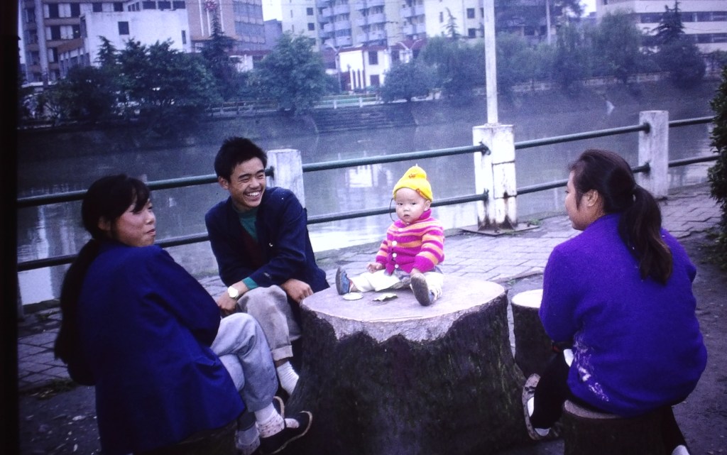 En av våra ”lediga” eftermiddagar satt jag i en park i centrala staden och åt bröd, ensam vid det tillfället. Det brukade vara mycket folk i den parken men den här dagen var det tunnsått med besökare. Ett ungt par satt på en bänk mitt emot mig, jag tittade inte så noga på dem, och efter en liten stund reste de sig och gick. Det gick några minuter så såg jag tjejen komma mot mig, jag kände inte igen hennes ansikte men mönstret på t-shirten hon hade. Jag blev inte så förvånad, det hände några gånger att folk kom fram på gatan och ville prata engelska när de såg att det var västerlänningar, så jag trodde att detta var fallet även nu. Det var det också. Hon trodde att jag var amerikan men jag har goda kunskaper i engelska. Det visade sig att hon höll på att utbilda sig till lärare i engelska och kunde tillräckligt för att vi skulle kunna ha en konversation. Vi satt och pratade i minst en halvtimma och bytte adresser när vi skildes åt. Det brukar ju inte bli så mycket av sådant men några veckor efter det att jag hade kommit hem fick jag brev från Xiumei, som hon heter. Jag reste tillbaka till Chengdu tre år senare och hälsade på henne. Jag märkte snabbt att hon är en intelligent tjej och jag försökte hjälpa henne med det jag kunde, bl.a. frågade hon mig om jag tyckte att hon skulle söka sig till ett universitet i USA. Jag tycker man ska ta de chanser man får när det handlar om seriösa saker så jag uppmuntrade henne. Hon bor och jobbar nu i USA sedan ett antal år och vi har fortfarande kontakt, efter 30 år.