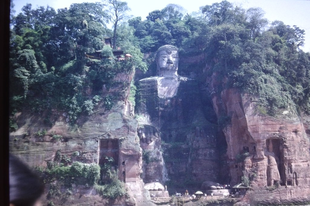 Ett par andra minnen. Vi besökte Leshan och såg den jättelika buddhafiguren som är uthuggen ur klippan. Kökultur hade de inte i Kina. När jag skulle köpa biljett vid Leshan var det fullt av folk vid biljettbåset och det var inte så att de stod i ordnad kö, som vi är vana vid, utan alla trängdes framför båset. Det enda man kunde göra var att se till att ha jämna pengar i handen, tränga sig fram till båset, sträcka fram handen med pengarna och se till att få en biljett innan man drog tillbaka handen.