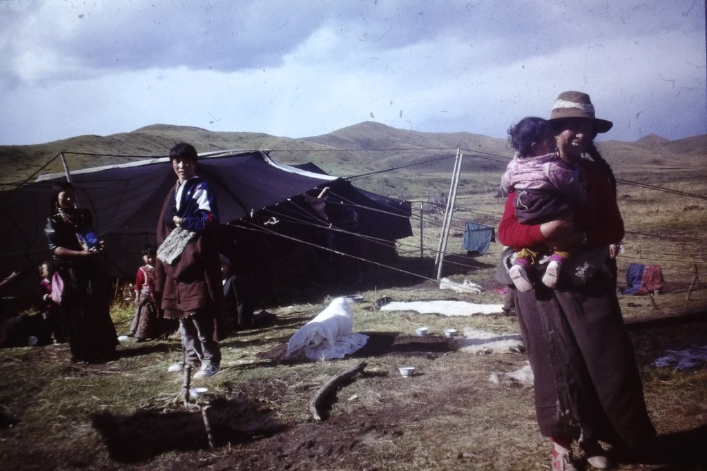 En av dagarna skulle vi besöka ett nomadläger. Där är landskapet platt så vi kunde se de stora svarta tälten på avstånd men det var svårt att bedöma hur långt borta de var. Det fanns ingen väg, bara en upptrampad stig, men heller inget högt gräs. Vi började gå och träffade snart en man. Jörgen frågade honom hur långt det var till nomadlägret och han svarade ungefär två kilometer. Vi fortsatte att gå och hade nog gått ett par kilometer och verkade inte vara så mycket närmare lägret när vi träffade en annan man. Jörgen ställde samma fråga och fick samma svar och den här gången stämde det nog. Varför den första mannen hade gett lite felaktig information förklarade Jörgen med att han förmodligen inte visste men inte ville ”tappa ansiktet” genom att medge det. Ett råd han gav oss var att fråga minst tre personer om vi ville veta något, om två svarade samma sak stämde det nog. Resebyrån hade i sitt program varnat för att nomaderna kunde ha aggressiva hundar men vi hade tur, det fanns hundar som skällde rejält när vi kom nära men de var bundna och när de såg att nomaderna tog emot oss som gäster slutade de skälla. Vi blev bjudna på bl.a. te med jakmjölk, lite annorlunda smak. Jakarna är inte inhägnade utan går helt fritt. Jörgen förklarade att de behandlas väl av sina ägare så de har ingen anledning att vara aggressiva mot människor. För någon som mig som inte är van vid djur var det en lite speciell men positiv känsla att gå mellan stora djur som jakar i full frihet. Nomaderna använder även jakarna som riddjur, det kom en ridande på en jak när vi satt utanför tälten.